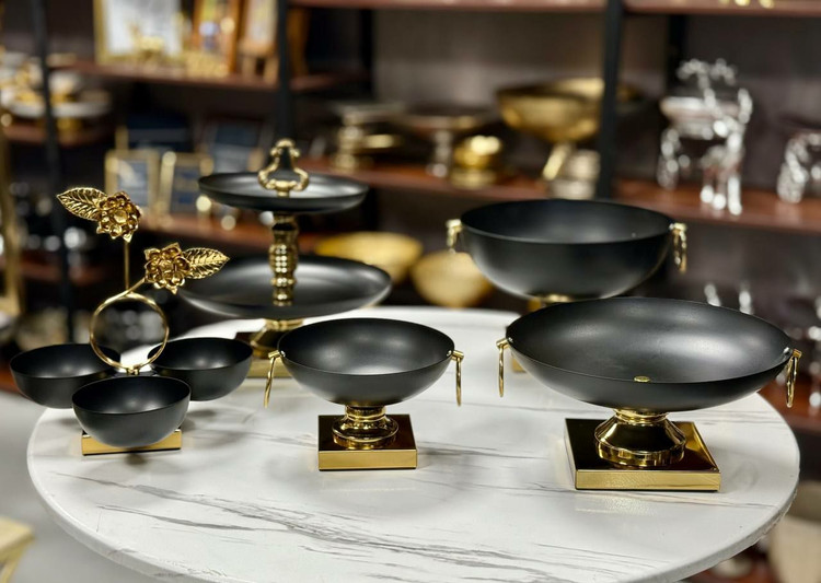 سرویس پذیرایی 5تیکه فلزی طلایی مشکی مدل لوتوس کد1426