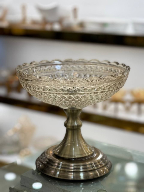 فلزی آبکاری،بلور طرحدار سایز میوه خوری۳۰*۱۶_سایز آجیل خوری۲۰*۱۸