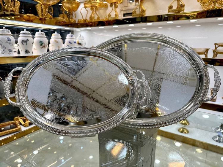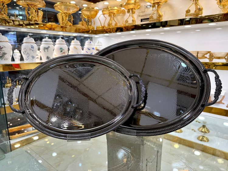ست سینی بیضی پذیرایی استیل وارداتی رنگبندی طلایی سیلور دودی کد2102
