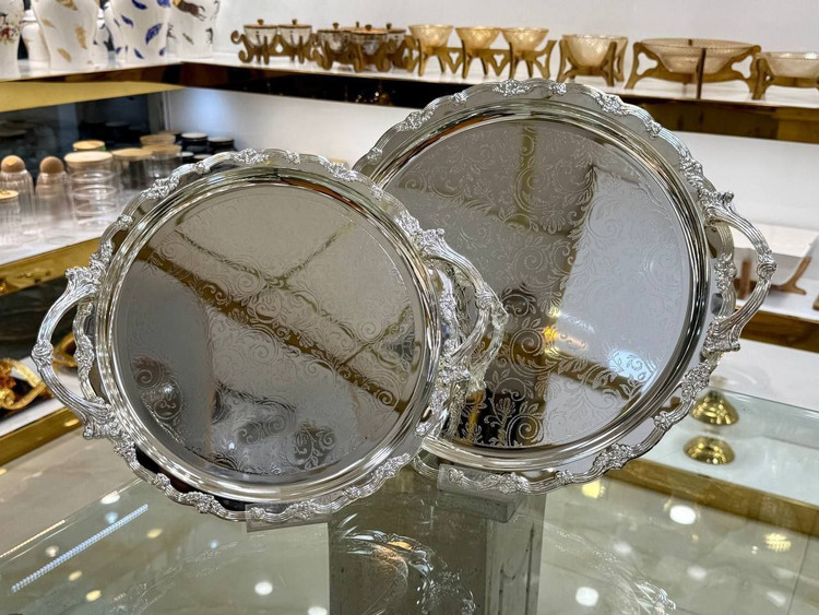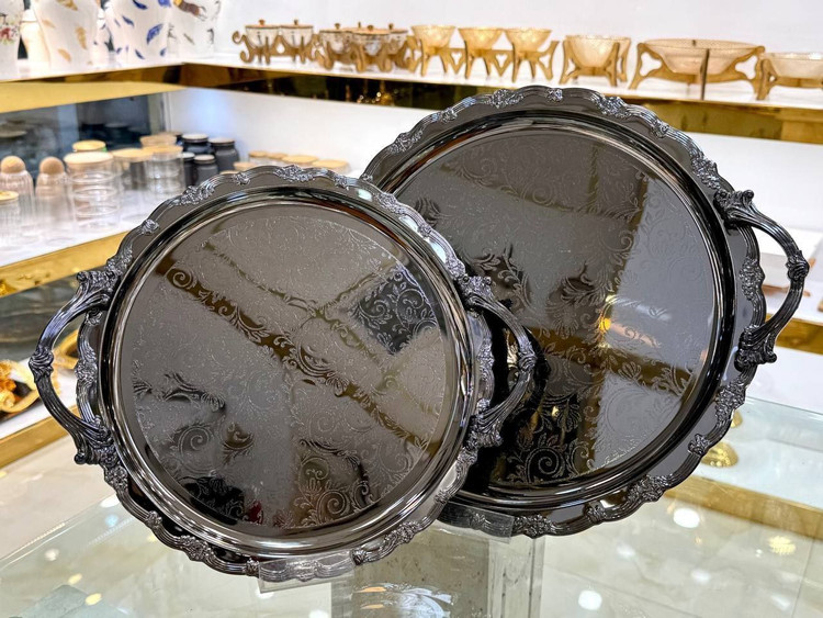 ست سینی گرد پذیرایی استیل وارداتی رنگبندی طلایی ،سیلور ،دودی کد2104