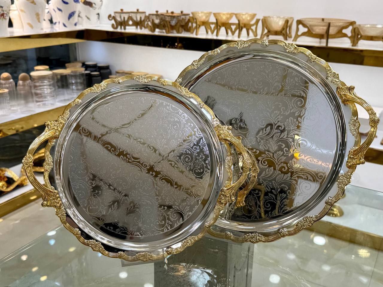 ست سینی گرد پذیرایی استیل وارداتی رنگبندی طلایی ،سیلور ،دودی کد2104