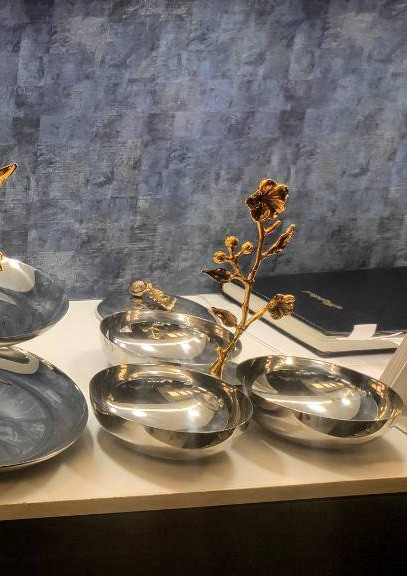 اردوخوری سه خونه استیل برنج مدل ارکیده سیلور طلایی، سیلور سایز بزرگ کدJ106
