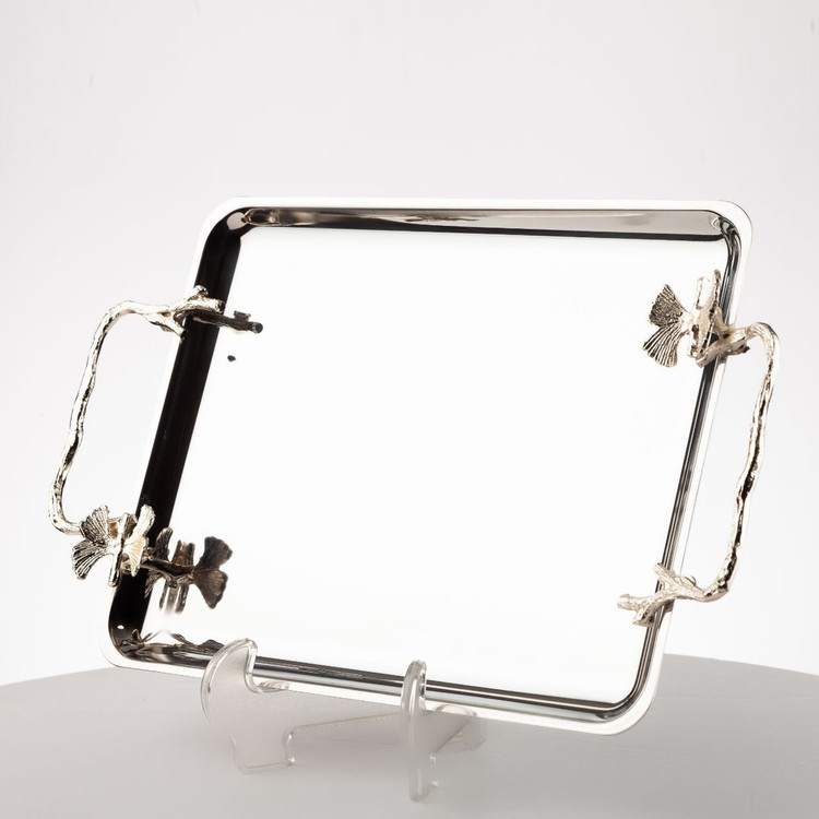 سینی پذیرایی مستطیل استیل برنج مدل پروانه سیلور طلایی، سیلور سایز کوچک کدJ31