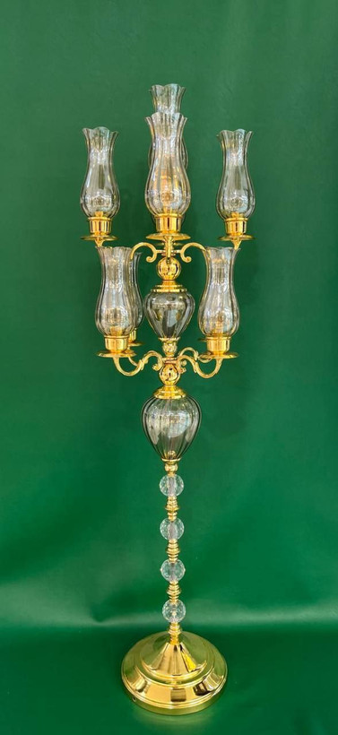 شمعدان 9 شعله حبابدار کریستالی کنار سالنی طلایی _سیلور کدJ707