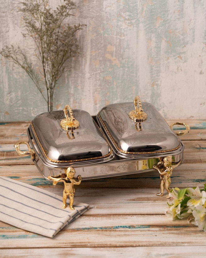 سوفله خوری مستطیل دوقلو دربدار استیل برنج مدل فرشته کد۲۸۸۰