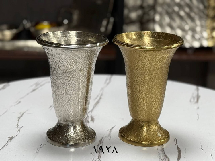 گلدان رومیزی دکوراتیو مدل کاپ طرح خط خطی آلمینیوم طلایی سیلور کد1928❗قیمت هر مدل/سایز مجزاست❗