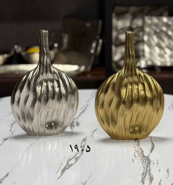 گلدان رومیزی دکوراتیو مدل کوزه ای طرح موج آلمینیوم طلایی سیلور کد۳۰۵۴❗قیمت هر مدل/سایز مجزاست❗