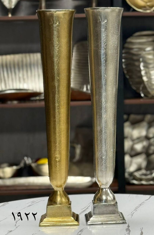 گلدان رومیزی و کنار سالنی مدل شیپوری آلمینیوم طلایی سیلور کد۳۰۶۴