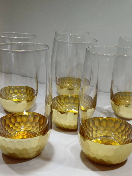 لیوان بلند بلور‌ی طلاکوب مدل زنبوری وارداتی کد ۳۱۸۷
