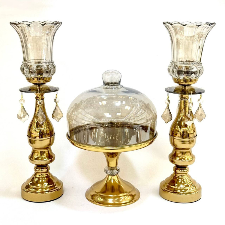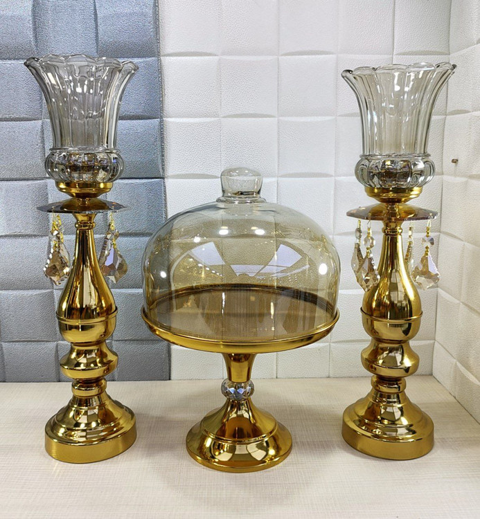 ست شمعدان و کاپ کیک پایه دار رنگ طلایی کد7035