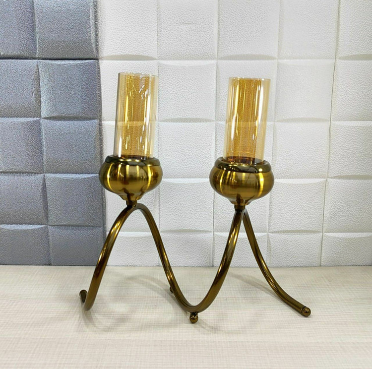 شمعدان رومیزی 2شعله رنگ آنتیک کد6034