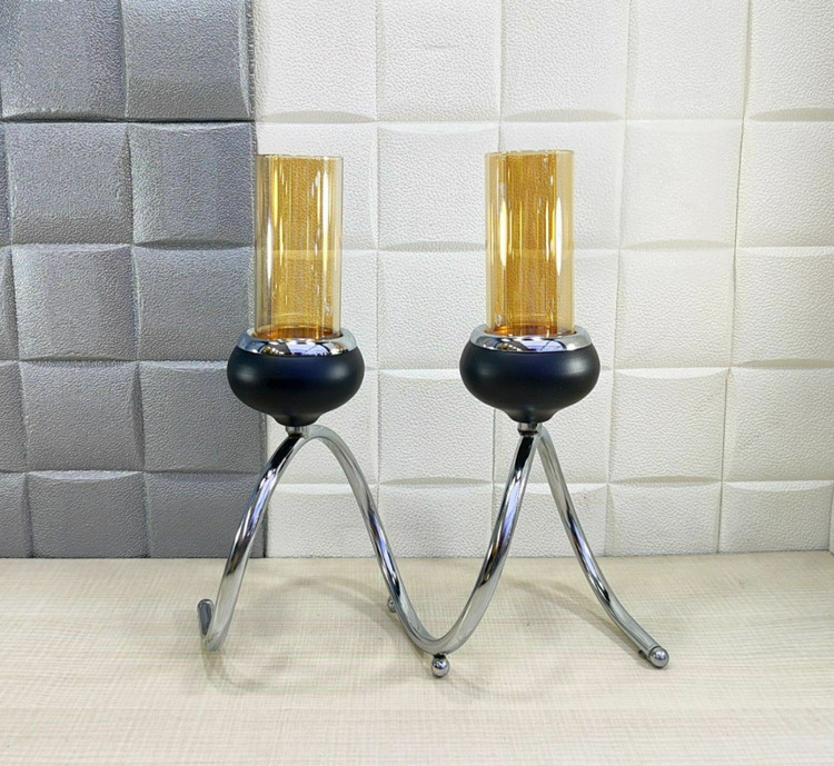 شمعدان رومیزی 2شعله رنگ سیلور مشکی کد6024