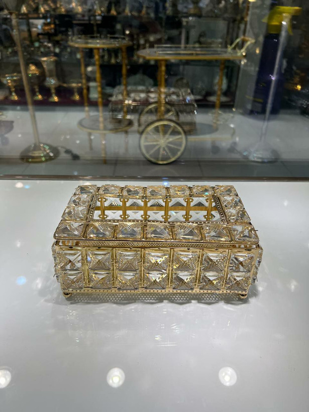 باکس دستمال کاغذی کریستالی رنگ طلایی وارداتی کد21822