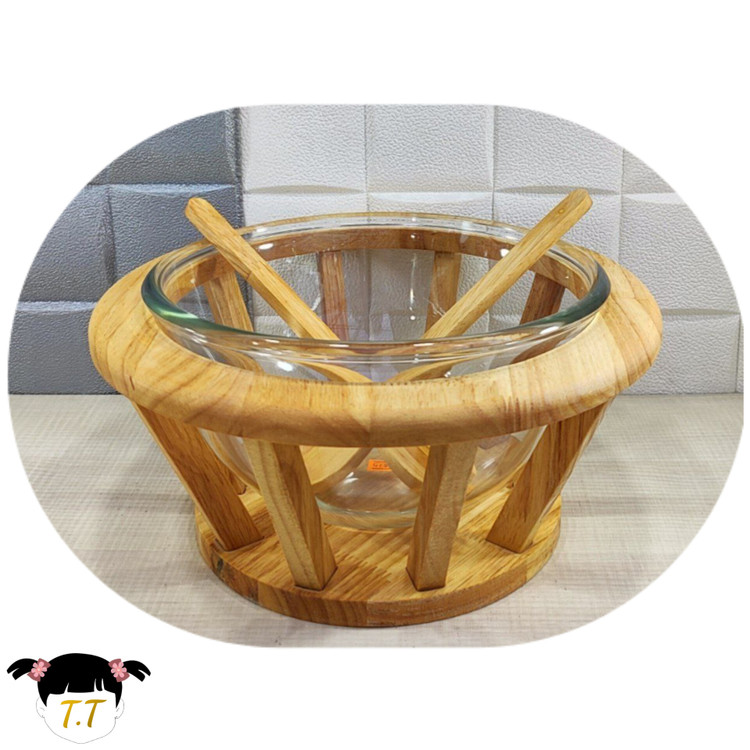 سالاد خوری پیرکس پایه دار چوب رابروود کد105