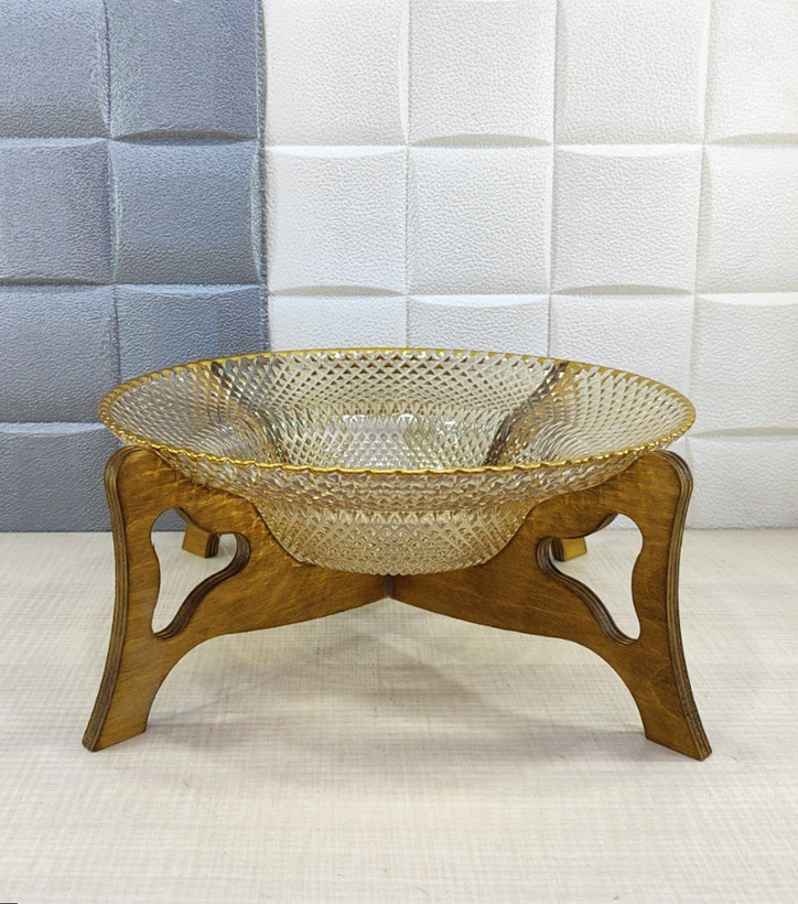 کاسه گود پیکسل لبه طلایی پایه چوبی کد650
