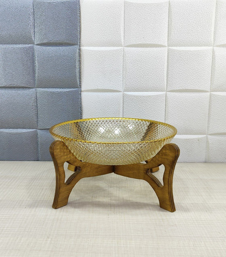 کاسه گود پیکسل لبه طلایی پایه چوبی کد652