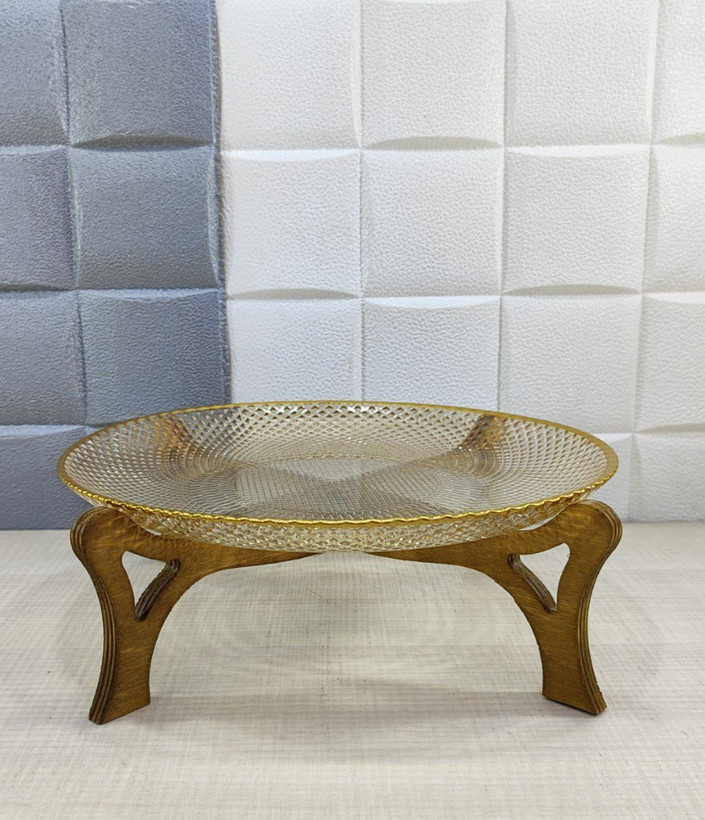 دیس مدل پیکسل لبه طلایی پایه چوبی کد654