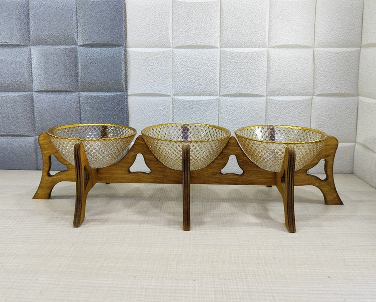 اردوخوری 3خونه پیکسل لبه طلایی بهمراه پایه چوبی کد655