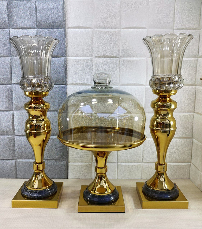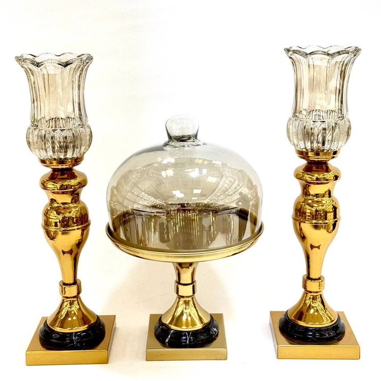ست شمعدان و کاپ کیک پایه سنگی رنگ طلایی کد4054