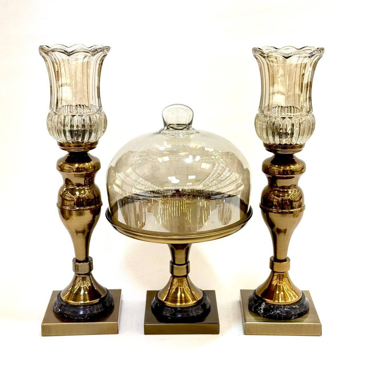 ست شمعدان و کاپ کیک پایه سنگی رنگ آنتیک کد4053
