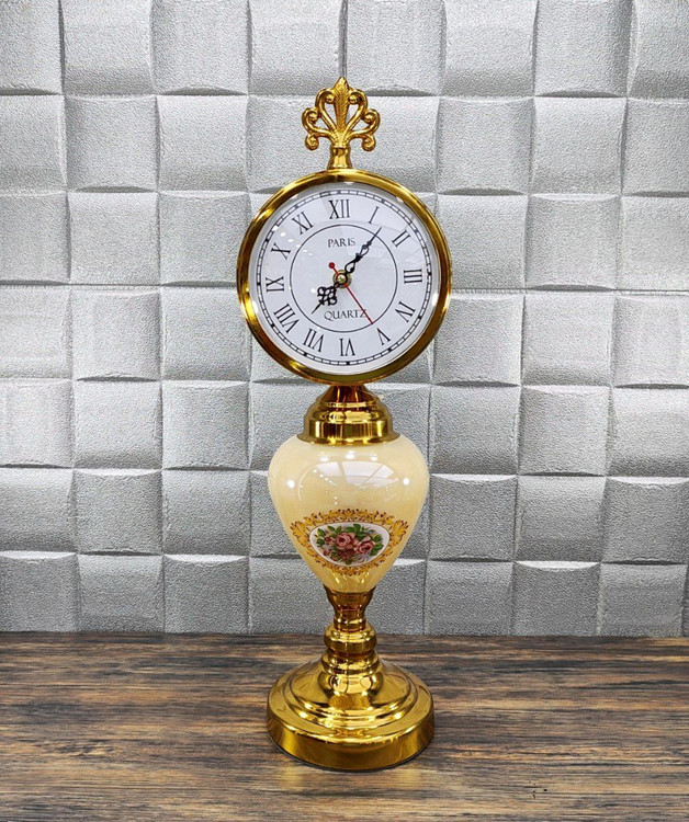 ساعت پایه دار رومیزی رنگ طلایی مدل گلدار کد9026