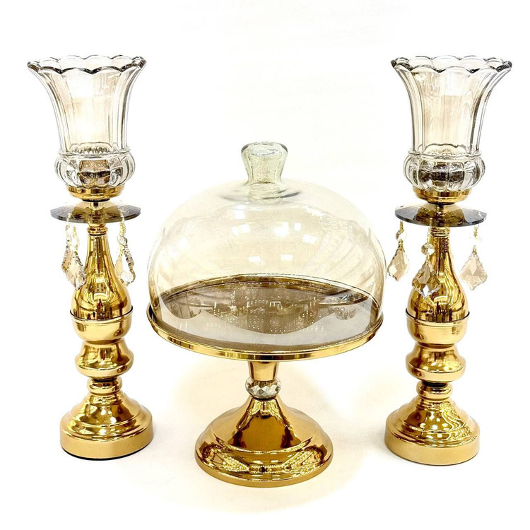 ست شمعدان و کاپ کیک پایه دار فلزی رنگ طلایی کد7035